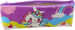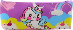 Det iøjnefaldende enhjørninge- og regnbuemønster i pastelfarver gør penalhuset attraktivt for børn.