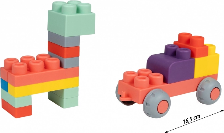 Bløde byggeklodser er et ideelt valg til den første byggeleg. Takket være det behagelige materiale og de afrundede former er de sikre for små børn, lette at gribe om og indbyder direkte til eksperimenter. Pastelfarverne vækker nysgerrighed og understøtter visuel differentiering.