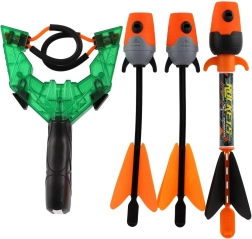 Sjovt skydesæt til børn fra 8 år: slynge med tre hvinende pile til leg på afstand, i højden og mod mål. Udvikler fingerfærdighed og præcision, kan spilles alene eller med venner og giver sikker, actionfyldt underholdning både inde og ude.