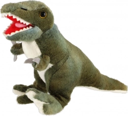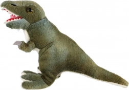 Denne plysdinosaur T‑Rex udmærker sig ved en realistisk form med korte ben, lang hale og åben lille mund med bløde “tænder” i stof. Den silkebløde overflade er skånsom mod barnets hud og indbyder til kram, mens de omhyggelige sømme og formgivning fremmer kreativ leg og fantasi.