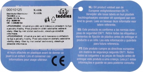 Den søde brun-hvide plys kanin i liggende position vil glæde børn fra fødslen. Den er ekstra blød, sikker for spædbørn og takket være den kompakte størrelse ligger den perfekt i små hænder. Ideel til kram, beroligelse og fantasileg.