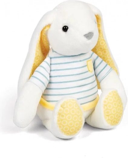 Denne hvide plyskanin vil charme børn med sit venlige smil og ekstra bløde overflade. Takket være den lette konstruktion og bløde krop er den nem at gribe selv for de mindste hænder og giver en følelse af komfort og tryghed når som helst – derhjemme, på farten og ved sengetid.