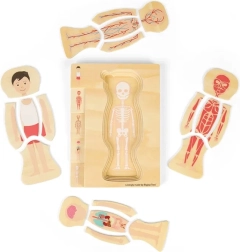 Udforsk menneskekroppen på en legende måde med dette kvalitets-træpuslespil. Med lagdelte brikker forstår børn kroppens opbygning fra skelet til organer, samtidig med at de udvikler finmotorik og logisk tænkning. Fremstillet af FSC-certificeret træ, med ugiftige farver og i overensstemmelse med europæiske sikkerhedsstandarder.