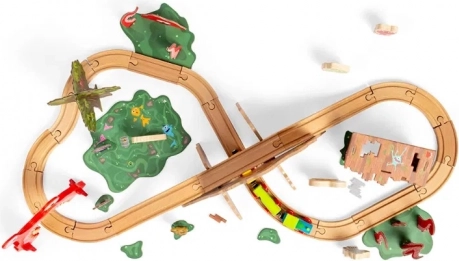 Alle dele er lavet af førsteklasses, bæredygtigt FSC-certificeret træ med ugiftige farver og lakker. Sættet er kompatibelt med de fleste træbaserede jernbanesystemer, så du let kan udvide eksisterende skinner og tilbehør.