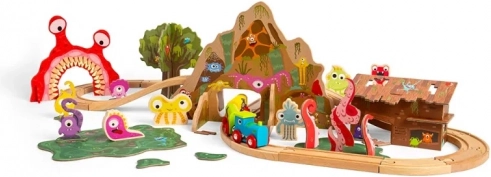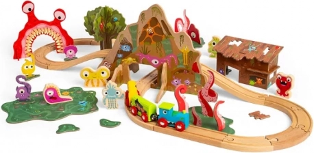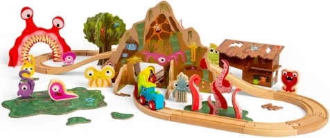 Denne farverige togbane med monstre forvandler ethvert værelse til en sjov fantasiverden. Børn kan bygge deres egen bane med tunnel og bro, køre lokomotivet forbi finurlige skabninger og finde på endeløse historier. Sættet er ideelt til at udvikle finmotorik, hånd-øje-koordination og sociale færdigheder ved leg med venner.