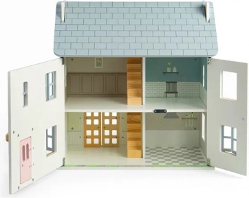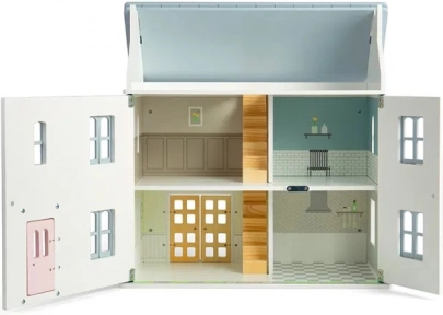 Dukkehuset er lavet af bæredygtigt FSC®-certificeret træ og afsluttet med giftfri farver, så det er sikkert for børn og skånsomt mod naturen. Det solide træhåndværk tåler daglig leg, og de smukke detaljer stimulerer fantasi, selvstændighed og historiefortælling.
