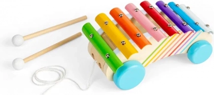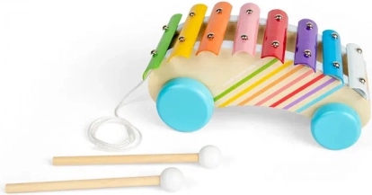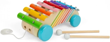Denne legende træk-xylophon understøtter den naturlige udforskning af rytme og lyde. Med otte farvede metal-tangenter kan børn let slå glade toner an, mens træksnoren styrker både fin- og grovmotorik. Den er ideel som første skridt ind i musikkens verden – sjov, sikker og holdbar.