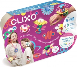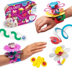 CLIXO Jewelry er et glitrende tematiseret sæt inspireret af origami, som ved hjælp af stærke magneter forbinder forskellige former til unikke smykker og accessories. Lange bånddele og specialdesignede blomsterelementer gør det muligt at skabe spiraler, vedhæng og iøjnefaldende hårpynt. Delene er vandafvisende, lette og sikre – uden BPA og ftalater.