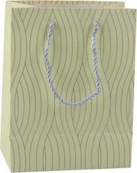Gaveposen er udstyret med flettede hvide hanke, som sikrer komfortabel og sikker transport af gaver. Den er stærk og holdbar, hvilket muliggør bekvem brug selv til tungere gaver.