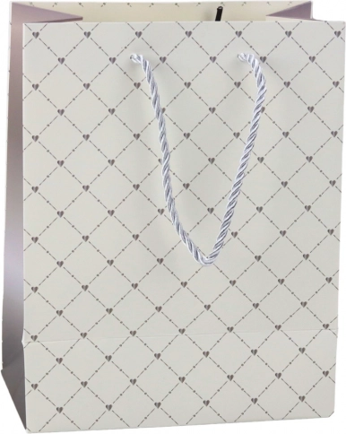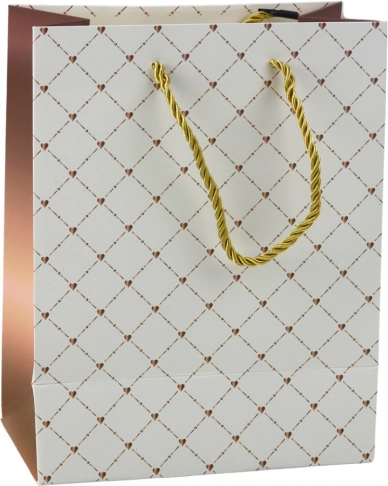 Denne elegante gavepose er det ideelle valg til indpakning af en særlig gave. Fremstillet af papir i høj kvalitet, og prydet med et fint og stilfuldt mønster i form af et lille gitter med glansfulde accenter, som giver posen en unik karakter og elegance. Takket være det alsidige design egner den sig til mange lejligheder – fra fødselsdage og jubilæer til højtider og sociale begivenheder.