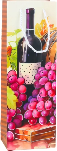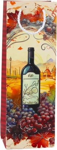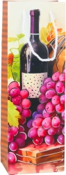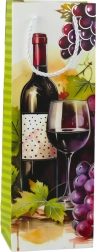 Farverige motiver med vinflasker og druer giver posen et elegant udtryk.