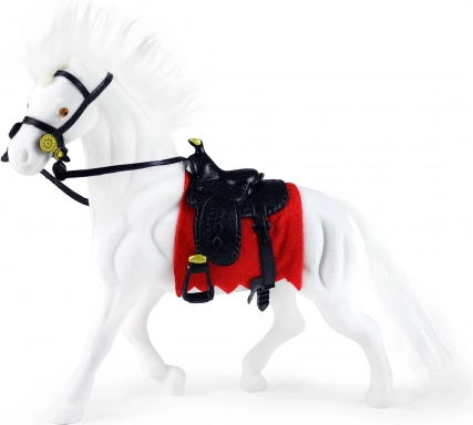 Hesten er udstyret med sadel og trense, så børn kan lege ægte ryttere og finde på deres egne historier.