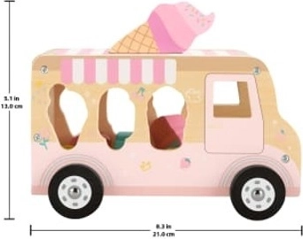 Dette træformsorteringssæt er ideelt til rolleleg som isbutik for små børn. Ud over underholdning støtter det deres kreativitet og udvikling af motoriske evner.