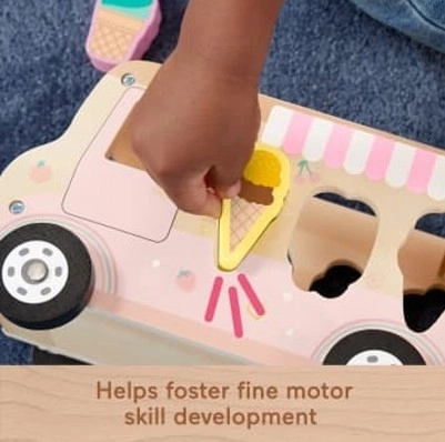 Børn vil elske det træbaserede formsorteringssæt med ispinde-tema fra Fisher-Price! En fantastisk legeting, der udvikler motoriske færdigheder og giver sjov leg som isbutik.
