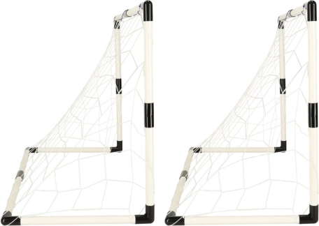 Giv børnene masser af bevægelse og sjov med et sæt bestående af to lette fodboldmål, to bolde og en pumpe. Den sammenklappelige konstruktion er nem at transportere, ideel til haven og indendørs og egnet fra alder 3+. En robust plastikramme og et stærkt net sikrer sikker leg og træning af præcision og koordination.