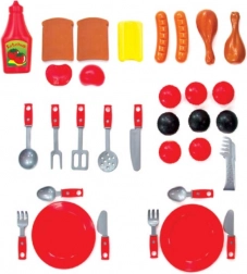 Børnegrillen fra mærket MOCHTOYS er det perfekte valg for små kokke. Den fuldt udstyrede grill indeholder forskellige tilbehør som kyllingestykker, ketchup, pølser, tomater, brød, kul, tallerkener og bestik. Højkvalitets plast sikrer lang holdbarhed og sikkerhed for børn.
