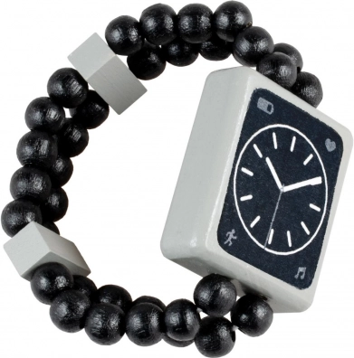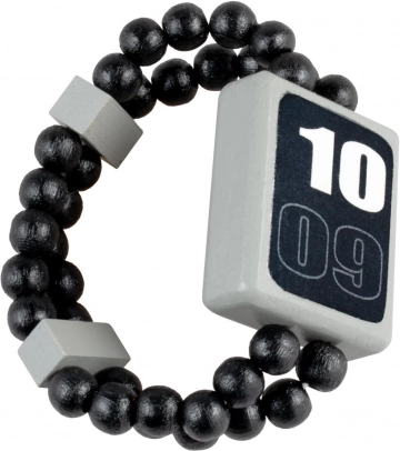 Giv børnene kreativ leg og diskret tidslæring med det dobbeltsidede træur. Den ene side viser digital tid, den anden en analog urskive med visere – et ideelt redskab til de første skridt i tidsforståelse. Den lette trækonstruktion og det elastiske perlearmbånd sikrer behagelig pasform og nem påtagning uden spænde.