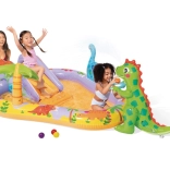 Oppusteligt vandlegeplads til børn med rutsjebane og springvand INTEX dinosaur