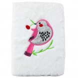 En original notesbog med et blødt, pelsagtigt omslag er det ideelle tilbehør for dem, der sætter pris på unikke og behagelige accessories. Det hvide omslag er udsmykket med en broderet, yndefuld lille fugl i rosa og sølv, hvilket giver notesbogen et unikt strejf af charme og elegance.