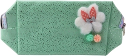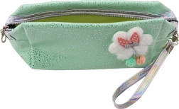 Denne alsidige lille taske i en blid mintfarve kombinerer et legende design med praktiske detaljer. De glitrende partikler giver et elegant præg, mens frontapplikationen i form af en pjusket sky med sløjfe og farvede pomponer understreger det søde look.