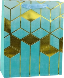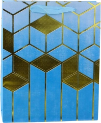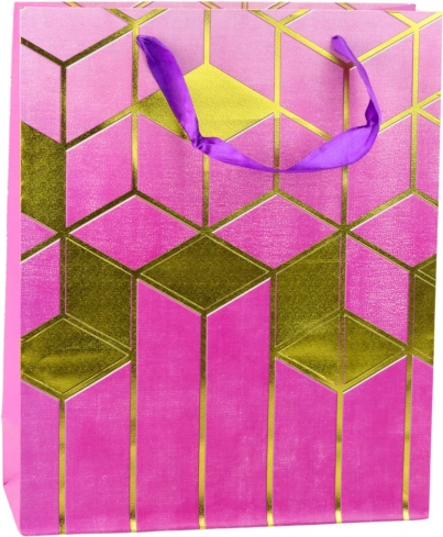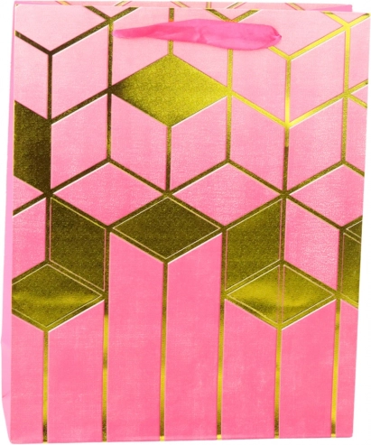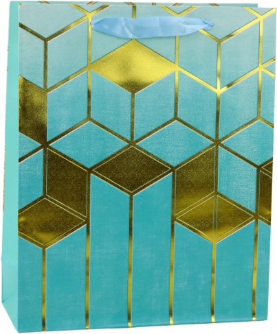 Denne elegante gavepose kombinerer et moderne design med funktionalitet. Den prydes af markante gyldne geometriske motiver og dybe farver, som gør den til en repræsentativ indpakning til enhver gave. Det solide dekorationskarton og de holdbare snorehanke giver komfortabel og sikker transport.