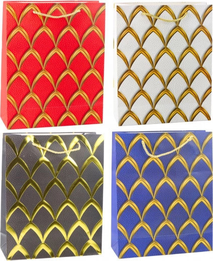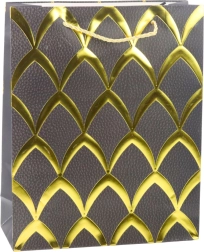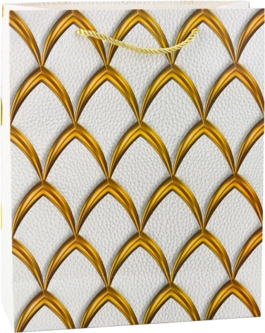 Denne stilfulde gavepose giver enhver gave et strejf af noget særligt. Du pakker gaven på et øjeblik, og takket være den robuste konstruktion og det holdbare materiale kan du trygt bære den hele vejen til modtageren. Den gyldne udsmykning i glamourstil tiltrækker opmærksomhed og løfter præsentationen af gaven til et højere niveau.