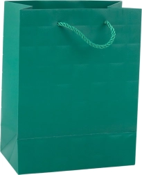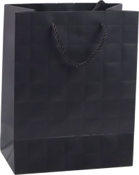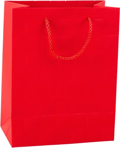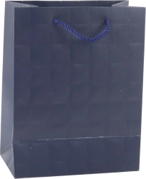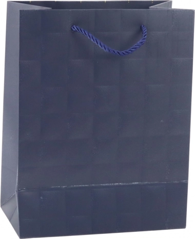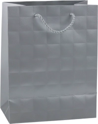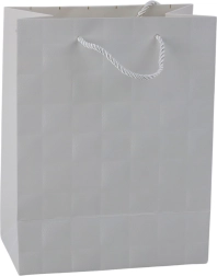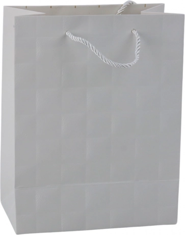 Denne stilfulde gavepose udmærker sig ved et rent look og en diskret tekstur af prægede firkanter, som virker både moderne og luksuriøs. Takket være den solide prydkarton og de kvalitets snorehåndtag er posen holdbar og egnet selv til tungere gaver.