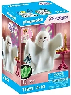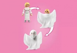 Om dagen prinsesse, om natten et mystisk slots-spøgelse – dette legesyge PLAYMOBIL Princess Magic-sæt giver børnenes historier et strejf af fantasi. Den aftagelige hættede kappe og kappe afslører den kongelige identitet, mens den lysende dragt oplyser gemakker og gange.