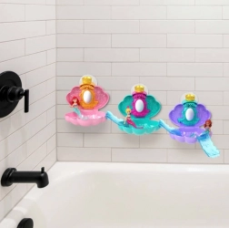 Åbn den glitrende muslingeskal, og opdag en sød havfrue inspireret af den elskede verden fra Den Lille Havfrue. Med sugekoppen fastgør du sættet på glatte fliser eller karrets kant og lader havfruen suse ned ad vandrutsjebanen. Et ideelt badelegetøj, der stimulerer fantasien og selvstændig leg.