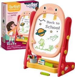 Opdag den alsidige WOOPIE børnetavle til tegning, skrivning og de første skridt i læringen. Den tilbyder en dobbeltsiddet overflade (kridt/tusch til tør aftørring), magnetiske elementer, rigt tilbehør med 56 dele og justerbar højde for komfortabel og langvarig brug.