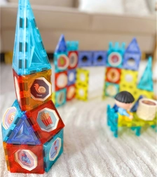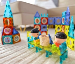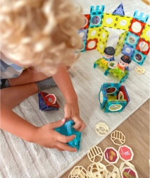 Stærke magneter gør det muligt for børn hurtigt at bygge og ombygge. Konstruktionerne holder formen og motiverer til yderligere eksperimenter med former og farver.