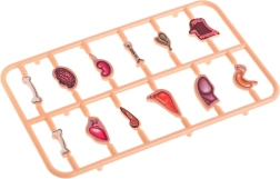 Pakken indeholder spilleplade med patient, roulette, pincet og 12 organer. På bagsiden er der et praktisk rum til alle komponenter.