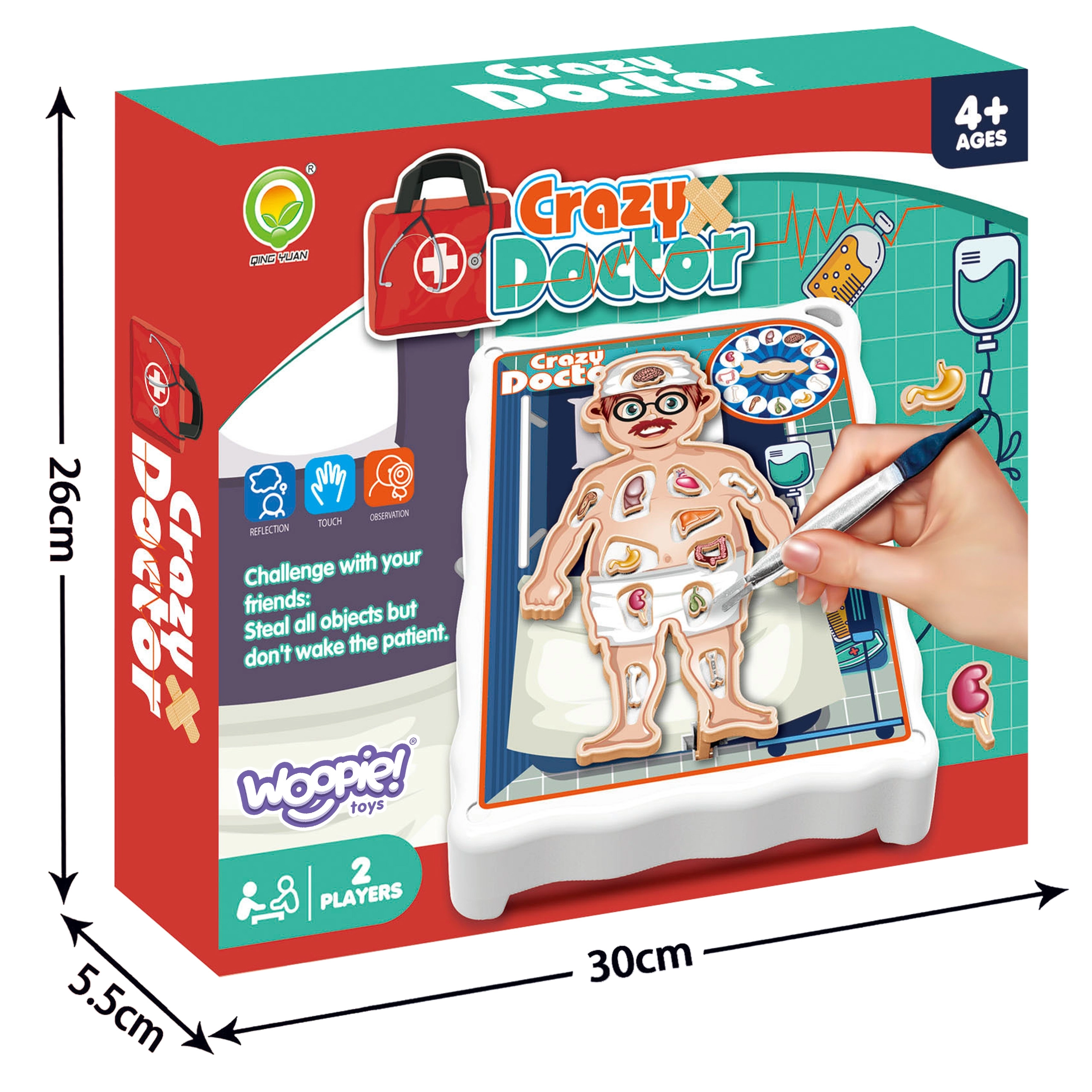 Skør doktor er et godt valg til fælles leg – det kan spilles af én spiller, men er sjovest for to. Et praktisk opbevaringsrum til organer på bagsiden gør det let at lægge alle delene på plads efter leg.