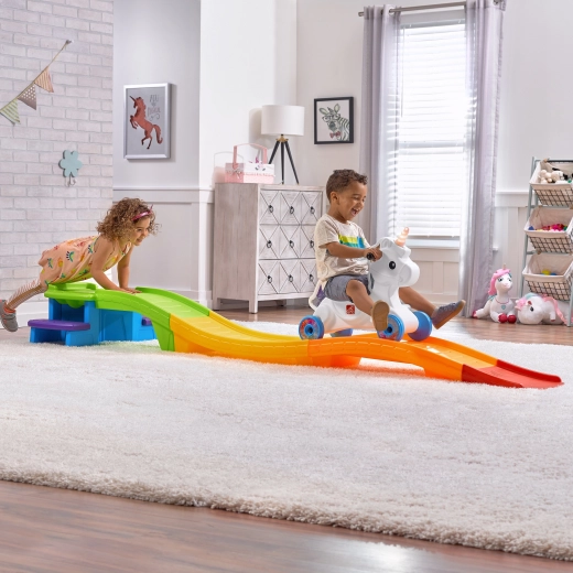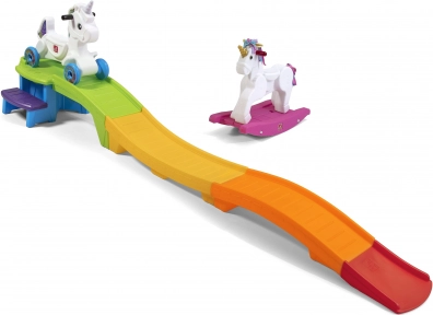 Træd ind i enhjørningernes magiske verden med rutsjebanen fra den anerkendte legetøjsproducent Step2. Den utrolige tur på den magiske hest bringer glæde og sjov til alle børn. De materialer af højeste kvalitet sikrer sikkerhed under legen på rutsjebanen.