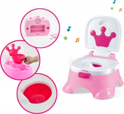 Børnepotte med musik 3-i-1 fra WOOPIE gør det hurtigere for barnet at lære at klare sig selv! Pottens brede, ergonomiske sæde, sidehåndtag og stabile base gør den ideel til børn. Takket være de indbyggede melodier, som kan startes og stoppes når som helst, bliver potte-tid en sjov oplevelse for barnet. Potten er designet til at gøre hverdagen lettere for forældre; tømningen tager kun et øjeblik. Den sammensatte potte kan også bruges som stol eller skammel til håndvasken. Den er fremstillet af materialer af højeste kvalitet og er sikker at bruge.