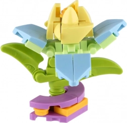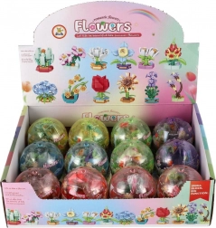 Dette nuttede mini-byggesæt forvandler hver kapsel til en farverig overraskelse. Hver blomst består af flere dele, der passer præcist sammen, og det færdige dekorative model bliver cirka 6 cm højt. Takket være de forskellige blomster-typer kan børn bygge deres egen lille “blomsterhave”.
