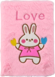 Denne unikke notesbog med et blødt, plysset omslag er ideel til dem, der elsker bløde og behagelige produkter. Den intense lyserøde farve gør notesbogen både praktisk og æstetisk tiltalende. På omslaget skiller en applikation sig ud med en kanin, der holder små hjerter og teksten 'Love', hvilket giver notesbogen en enestående charme.