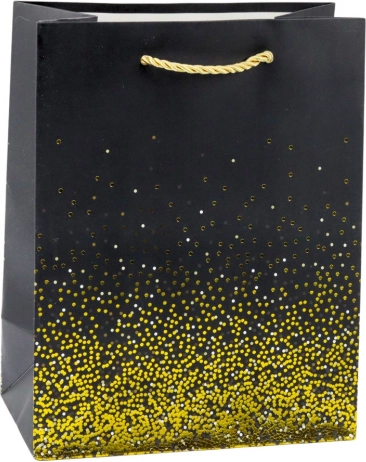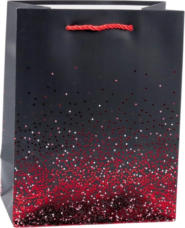 Fås i fire farvevarianter: gul, lilla, rød og turkis. Hver farve suppleres af en sort baggrund, der fremhæver elegancen og kontrasten til den glitrende effekt. De kraftige snorehanke i nuancer, der matcher gradienten, sikrer behagelig bæring, og den solide konstruktion garanterer sikker opbevaring selv af tungere gaver.