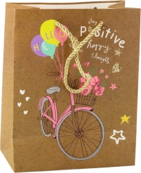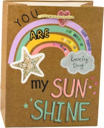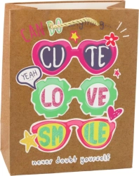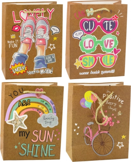 Posen kendetegnes ved fire forskellige motiver, hver med levende farver og positive slogans, der understreger det ungdommelige og optimistiske udtryk. De stærke snorehåndtag sikrer komfortabel transport og matcher farvemæssigt designet. Posen måler 23 x 18 x 10,5 cm og er ideel til indpakning af mellemstore og mindre gaver som kosmetik, tilbehør, bøger eller søde sager.