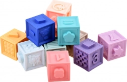 Bløde, farverige og sikre – sættet med 12 silikoneklodser PIXINO er designet til spædbørns og småbørns hænder. Hver side af klodsen bringer en ny udfordring: relieffer med former, dyr, tal og mængder støtter den tidlige udvikling af kognitive færdigheder og logisk tænkning. Ved tryk piver klodserne blidt, hvilket stimulerer hørelsen og motiverer til yderligere udforskning.