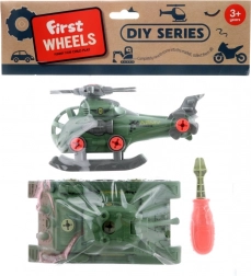 Dette skruemontagesæt vil glæde alle nysgerrige drenge og piger, som kan lide at samle og skille ad. I pakken finder du en detaljeret tank og helikopter, som barnet nemt samler ved hjælp af den medfølgende skruetrækker. Legetøjet er lavet af let og holdbar plast for behagelig og sikker leg.