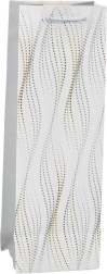 Fremstillet af prydkarton af høj kvalitet er denne pose ikke kun stilfuld, men også stærk og holdbar. Farvekoordinerede snorehåndtag sikrer komfort ved transport, og den forstærkede bund giver stabilitet og beskytter indholdet mod skader. Med målene 35 x 12 x 9 cm passer den perfekt til standardflasker.