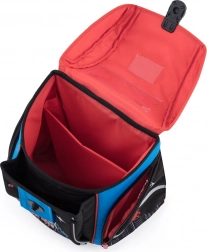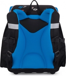 Sættet inkluderer også en praktisk pose til gymnastik eller indendørssko, som let kan lukkes ved at trække i snørebåndene. En-etagers penalhuse med to flapper uden fyld har elastiske løkker til at holde skriveredskaber, og en gennemsigtig folie til en skema-oversigt er en praktisk hjælp til skoleplanlægning.