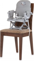Komfortabel og sikker spisning hvor som helst. Den bærbare højstol Chipolino Lollipop ash grey giver dit barn en stabil siddeplads ved spisebordet, både hjemme og på farten. Takket være det brede sæde på 36 × 30 cm og de robuste sikkerhedsremme sidder barnet komfortabelt og sikkert.