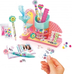 Skrivebordssættet Style4Ever forvandler ethvert arbejdsbord til en kreativ zone. Børn kan personliggøre blyantholderen og andet tilbehør ved hjælp af stickers, perler og dekorationsposer. Alt er designet, så resultatet bliver både unikt og praktisk.