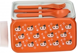Den stilfulde madkasse med kattemotiv tilbyder en smart løsning til at transportere færdige måltider. Integreret bestik og et praktisk elastisk bånd holder indholdet sikkert samlet, mens det robuste plastdesign egner sig til daglig brug.