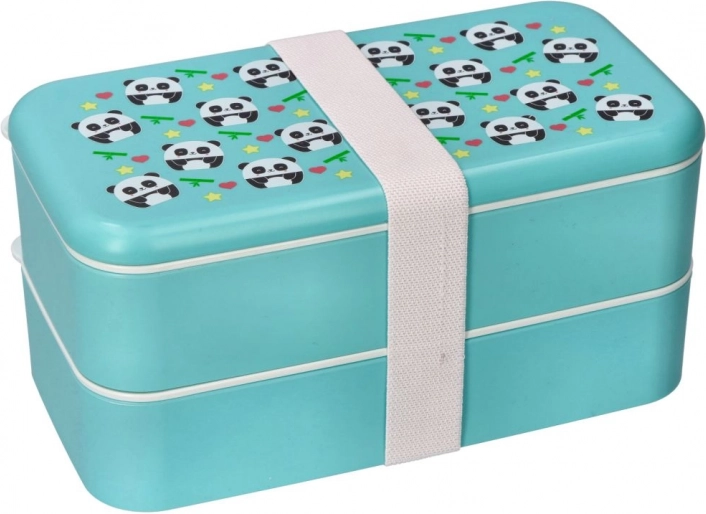 Stilren bento-boks i to lag i turkis med et legende pandamotiv holder din mad frisk og adskilt. Takket være de kompakte mål 20 × 10,6 × 10 cm passer den i skoletaske og arbejdstaske, og elastikbåndet holder alt sikkert samlet.