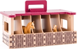 Stalden er lavet af kvalitets træ og designet til at holde til daglig leg. Seks separate bokse giver overskuelig opbevaring af hestefigurer og tilbehør. Ideel som gave til små dyre- og hesteelskere.