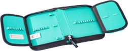 Efter åbning kan penalhuset fuldt udfoldes, hvilket gør organisering og søgning efter nødvendige genstande nemmere. Stærke elastikker er ideelle til opbevaring af trekantede farveblyanter og tuscher. Penalhuset er naturvenligt, da det er lavet af genbrugsmateriale.