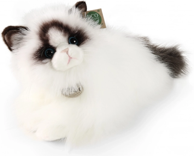 Plys-kat Ragdoll er lavet af højkvalitets blødt plys, hvilket giver den et realistisk udseende, der minder om et levende dyr. Det er en del af en eksklusiv kollektion af plyslegetøj fra mærket Rappa. Dette miljøvenlige legetøj har fyld fra genanvendte PET-flasker, hvilket bidrager til miljøbeskyttelse.